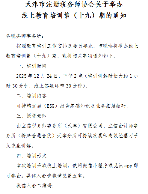 天津市注册税务师协会关于举办线上教育培训第(十九)期的通知